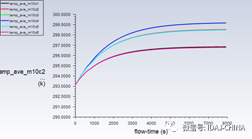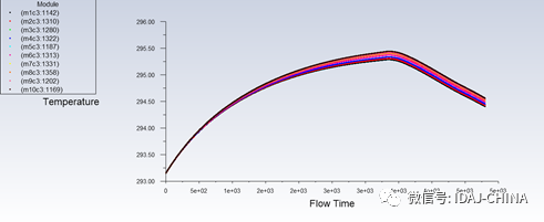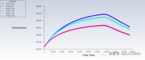 图27 模组10上各电芯的温度变化曲线-Fluent