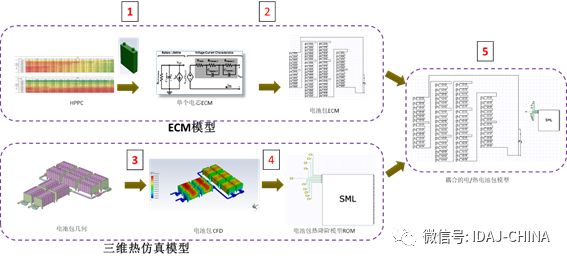 5:降阶模型(ROM)与等效电路模型(ECM)耦合,计算实际负载工况下的电池包温度