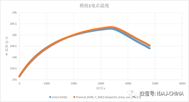 提取各个模组中间位置电芯的平均温度变化曲线,如图28所示。图29是其中模组1,6和10的中间电芯温度曲线。趋势与ROM计算结果一致。