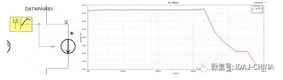 计算电池充电过程中的温度变化,在电池包等效电路模型中,外部负载设定为随时间变化的电流,变化曲线如图20所示,以45A左右的电路充电,当快充满时,电流逐渐下降。ROM模型中的输入定义为电池由于电流通过而产生的热量,即焦耳热。联合后模型如图21所示。