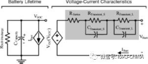 本文采用基于Min Chen提出的电池模型[3],如图2所示,左侧电容器和受电流控制的电流源继承自基于运行时的模型,模拟电池的容量,SOC和运行时间。右侧RC网络模拟瞬态响应。为了将SOC接到开路电压,使用受电压控制的电压源。所提出的模型,其独特的组件和依赖关系组合简化了提取过程,可以同时准确地“实时”捕获运行时,稳态和瞬态响应,电池的所有动态电气特性:可用容量,开路电压(VOC)和瞬态响应(RC网络)。