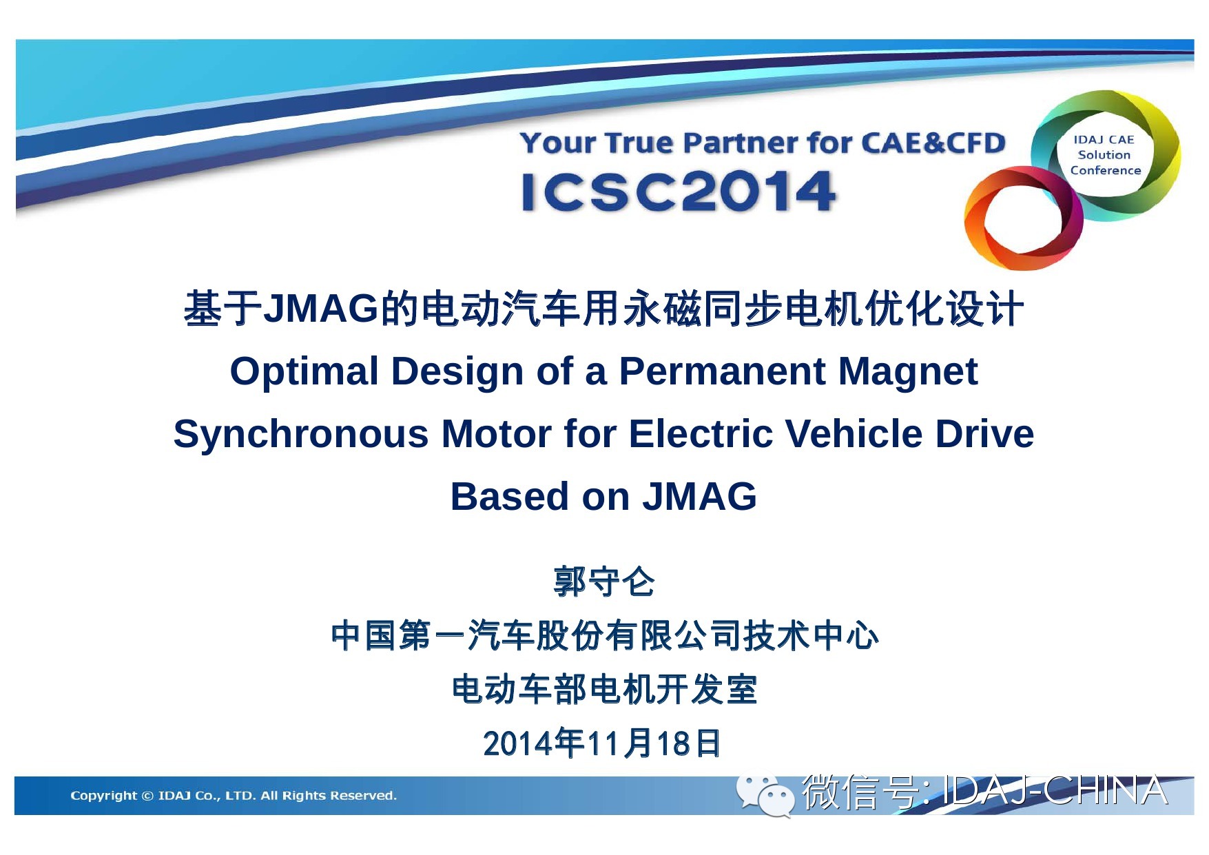 JMAG高阶论坛报告——基于JMAG的电动汽车用永磁同步电机优化设计(部分)