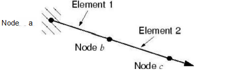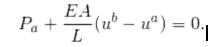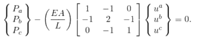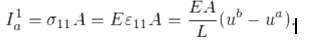 其 中u 和 u⁶ 分别是节点a 和 b 处的位移,L 是元素的原始长度。假设材料是有弹性的,杆中的应力由应变乘以杨氏模量E作用在端节点上的轴向力等于杆中的应力乘以其横截面积A。 因此,得到了内力、材料属性和位移之 间的关系:
