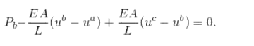 节点b处的平衡必须考虑在该节点上连接的两个元素的内力。来自元素1的内力现在作用于相反的方 向,因此变为负。得到的方程为