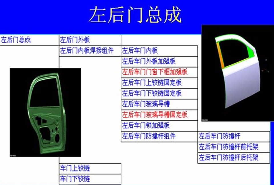 以车门总成为例,它由车门外板、车门内板、车门玻璃导槽、车门锁加强板等多个部件组成。这些部件需要通过精确的焊接和装配工艺,确保车门的密封性、强度和操作便利性。