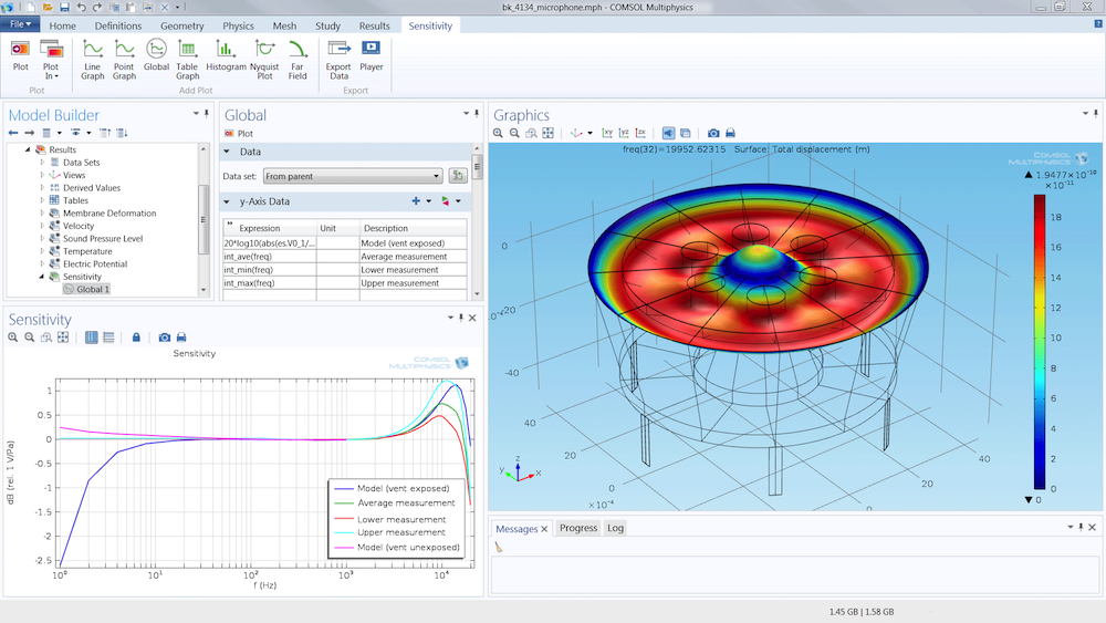 - • 核心优势: “多物理场”是COMSOL的代名词。它最大的魅力在于能够将声学与结构、流体、热、电磁等几乎所有物理场在同一个环境中进行双向耦合。这使得它在研发新型换能器(如MEMS扬声器/麦克风)、声学超材料、热声效应等前沿交叉领域具有不可替代的优势。其直观的用户界面和灵活的建模方式也深受学术界和研发人员的喜爱。