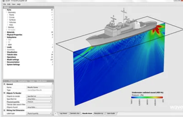 - • 核心优势: 当频率升高,传统的有限元法力不从心时,WAVE6就登场了。它以统计能量分析(SEA)为核心,并结合了FEM/BEM等方法,专注于解决复杂结构在中高频下的振动与声学响应问题。对于飞机、船舶、汽车这类大型复杂系统,WAVE6是进行高频噪声预测的理想工具。
