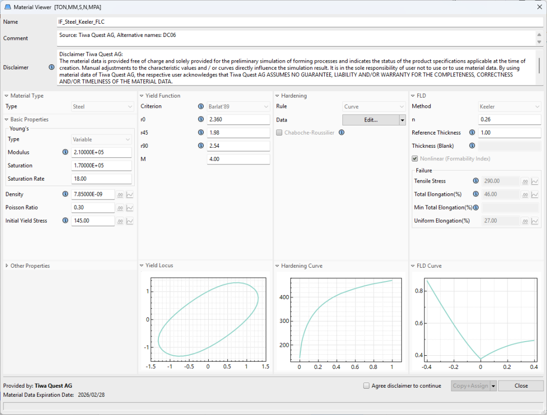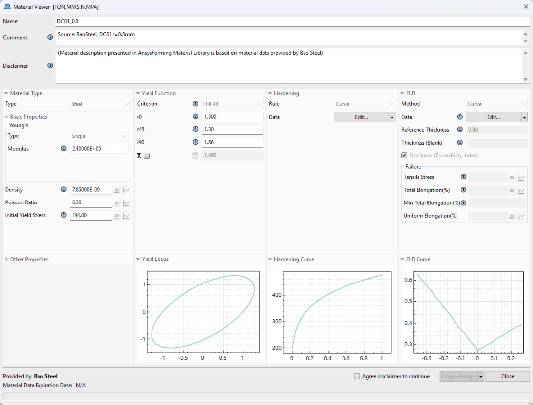 在LS-DYNA中,材料模型的选择对仿真精度至关重要,尤其在涉及金属塑性变形(如冲压、碰撞分析)时。33号、36号、37号、122号和133号材料模型均用于描述弹塑性行为,但理论基础、适用场景和计算能力差异显著。以下是综合对比分析:各向异性材料模型对比33号(MAT_BARLAT)适合普通铝合金(如5xxx系)或各向异性不显著的钢板。计算效率高,但双轴拉伸精度中等,不推荐用于高精度回弹分析3。理论基础:Barlat(1989)非二次屈服准则,通过单一线性变换描述面内各向异性36。适用性:参数标定:需轧制方向(0°)、45°、90°的屈服应力(σ)和塑性应变比(r)2。36号(MAT_3-PARAMETER_BARLAT)铝合金首选模型(如AA6016、AA7075),可精确预测拉深、胀形变形24。参数较少(r₀、r₄₅、r₉₀ + m),标定便捷3。突破性:引入指数m(FCC材料取8,BCC取6),不受r值限制,兼顾厚向与面内各向异性23。适用性:局限:未考虑包辛格效应,回弹预测逊于125/133号4。37号(MAT_HILL48)r<1时误差显著(如铝合金),甚至劣于各向同性模型24。仅推荐用于r>1的传统钢板(如DC04、ST16)2。传统模型:基于Hill二次屈服准则,仅考虑厚向异性(忽略面内差异)26。致命缺陷:应用场景:简易冲压分析,计算效率最高3。125号(MAT_YOSHIDA-UEMORI)钢制件回弹分析工业标准(如DP780、TRIP钢)48。需循环拉伸-压缩试验数据,参数标定成本高4。核心价值:耦合Hill48与非线性运动硬化,通过双曲面模型精确模拟包辛格效应和永久软化34。适用性:局限:仅支持壳单元,隐式求解需专用设置4。133号(MAT_BARLAT_YLD2000)先进高强钢(AHSS)与复杂铝合金(如AA5042)的终极选择34。双轴拉伸精度行业最优,但需7组数据(含σ_biax、r_biax)4。黄金标准:双线性变换屈服准则,全面捕捉面内/法向/剪切耦合效应36。适用性:计算成本:迭代求解耗时较长,适合高精度需求场景3。核心模型对比表特性33号 (Barlat89)36号 (3-Parameter Barlat)37号 (Hill48)125号 (Yoshida-Uemori)133号 (Barlat2000)屈服准则非二次函数,单一线性变换 非二次函数,三参数各向异性 Hill二次屈服准则 Hill48 + 非线性运动硬化 非二次函数,双线性变换 各向异性描述面内各向异性为主 面内+厚向各向异性 仅厚向异性仅厚向异性 全面(面内+厚向+剪切)适用材料普通铝合金/弱各向异性钢 所有r值材料 (铝/钢) 仅r>1钢材 (如低碳钢) r>1钢材(尤其先进高强钢) 先进高强钢/复杂铝合金 关键参数4组(σ₀、σ₄₅、σ₉₀、r值) 3参数(r₀、r₄₅、r₉₀ + 指数m) 3组r值 循环载荷数据 + r值 7组(含双轴拉伸数据)硬化模型等向/随动硬化 等向硬化为主 等向硬化 非线性运动硬化(双曲面)等向硬化 优势场景效率优先的铝合金冲压 铝合金通用成形 传统钢板简易分析 高精度回弹预测双轴拉伸/复杂各向异性局限忽略法向与剪切耦合效应 无循环硬化能力 r<1时误差极大参数标定复杂 需双轴试验,成本高 选型策略与工程建议按材料类型选择133号(成形) + 125号(回弹)组合48简易分析 → 37号回弹关键件 → 125号或133号通用成形 → 36号(平衡效率与精度)23高精度/复杂各向异性 → 133号(数据完备时)铝合金:传统钢板(r>1):先进高强钢(DP/TWIP钢):按仿真目标选择效率优先:33号(铝)、37号(钢)精度优先:133号(各向异性)、125号(回弹)循环载荷/包辛格效应:125号唯一选择4参数标定注意事项133号:必须包含双轴拉伸试验数据,否则精度丧失4。125号:需获取循环载荷曲线,建议参考LS-PrePost示例库4。36号:确保m值匹配材料晶体结构(Al: m=8, 钢: m=6)2。💎 总结:模型演进与工业应用趋势淘汰37号:除r>1钢的简易分析外,36号全面替代37号24。高端组合:133号(成形) + 125号(回弹)成为汽车覆盖件仿真新标准48。成本权衡:数据有限 → 36号(铝)、33号(弱各向异性钢)数据完备 → 133号(极致精度)实践提示:冲压仿真需同步优化单元算法(如壳单元选ELFORM=16关键区 + ELFORM=2非关键区)来源:阿毅工作室