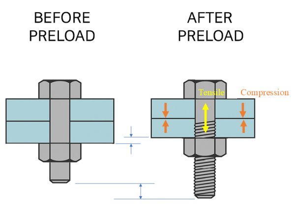 在现实生活中,当我们拧紧一个螺栓时,我们会拉伸它。这种拉伸产生了一个力,将连接的部分保持在一起。这个力被称为预拉力或预载。