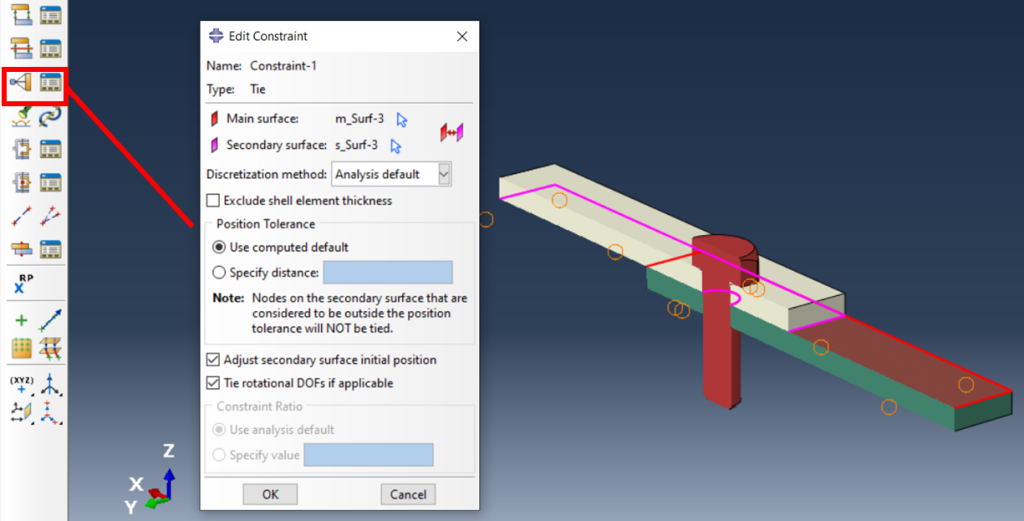 这种方法通常用于您不是在分析螺栓本身,而只是想在建模中牢固地连接两个部件。它非常适合早期设计阶段或在大型组件中测试载荷路径。但请记住,它不会模拟真实的螺栓行为,因此您无法捕捉松动、间隙或夹紧效应。