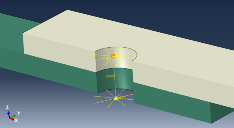 最后,在下一个图中,您可以看到参考点之间有一个梁元素连接器,代表螺栓连接。