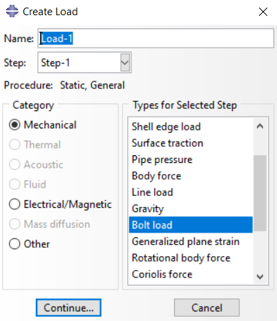 图13:在负载模块中选择“螺栓载荷”类型