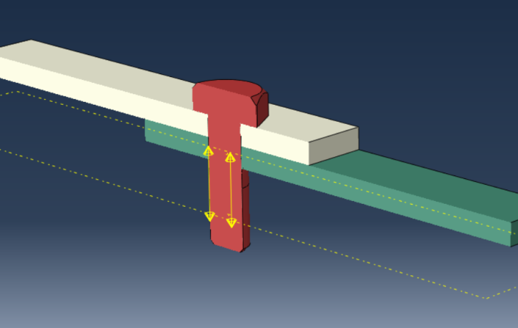 你可以将其视为模拟螺栓行为的数字弹簧。Abaqus允许你施加螺栓载荷(无论是力还是轴向收缩)来模拟紧固过程。它能够很好地捕捉预加载效应,尤其是在大型模型中。但由于它没有模拟与板的接触,可能会错过局部应力集中和接头摩擦。