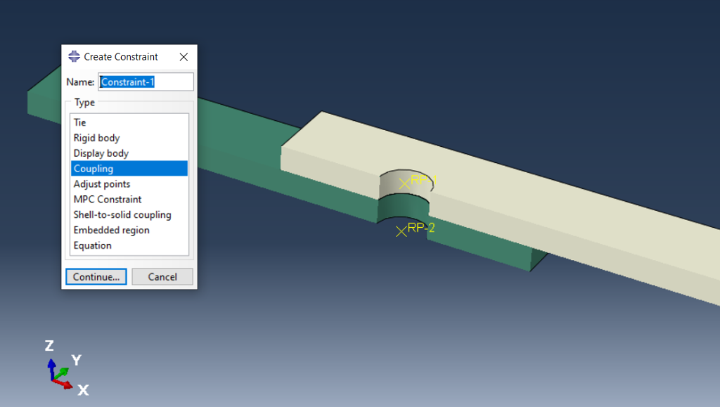 该方法使用元素连接器来连接两个参考点或表面,横跨关节。