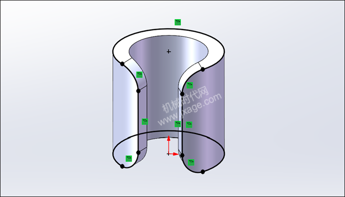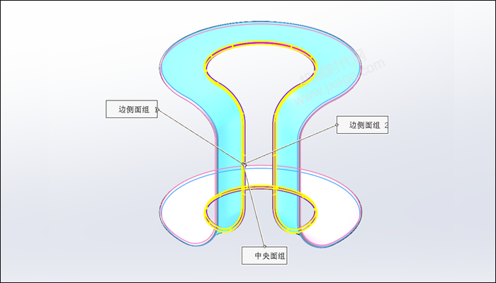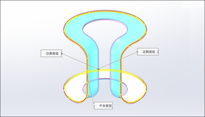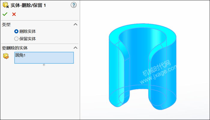4.点击“插入”-“特征”-“删除/保留实体”,类型选择“删除实体”,将下图蓝色的曲面进行删除。