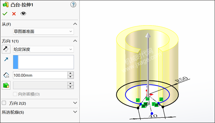 1.点击“拉伸凸台/基体”,在上视基准面绘制如下图所示的草图。