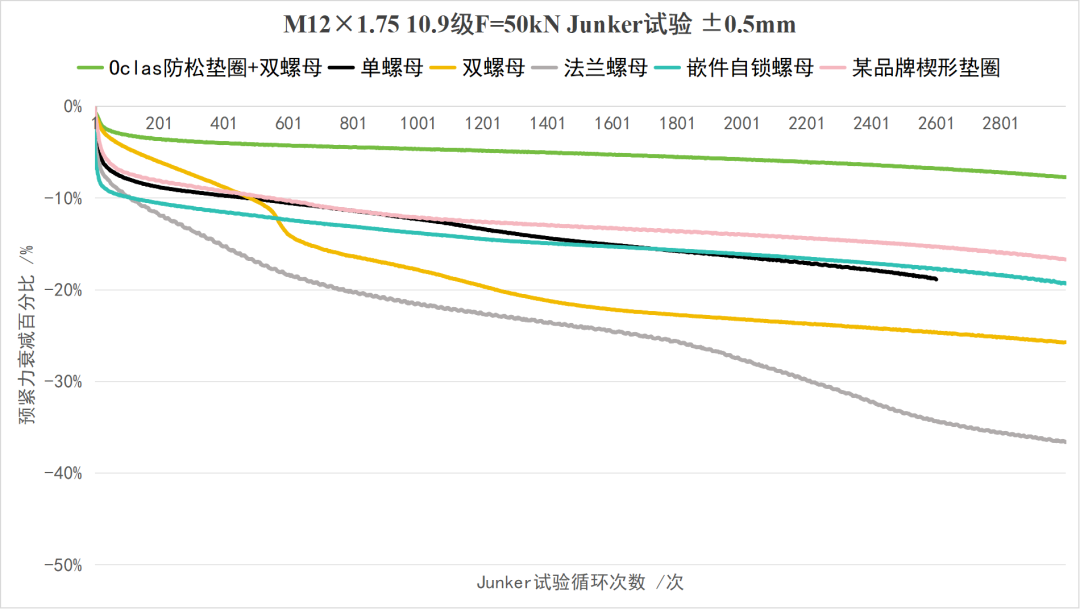 Oclas系列防松垫圈防松性能为嵌件自锁螺母的2.06倍