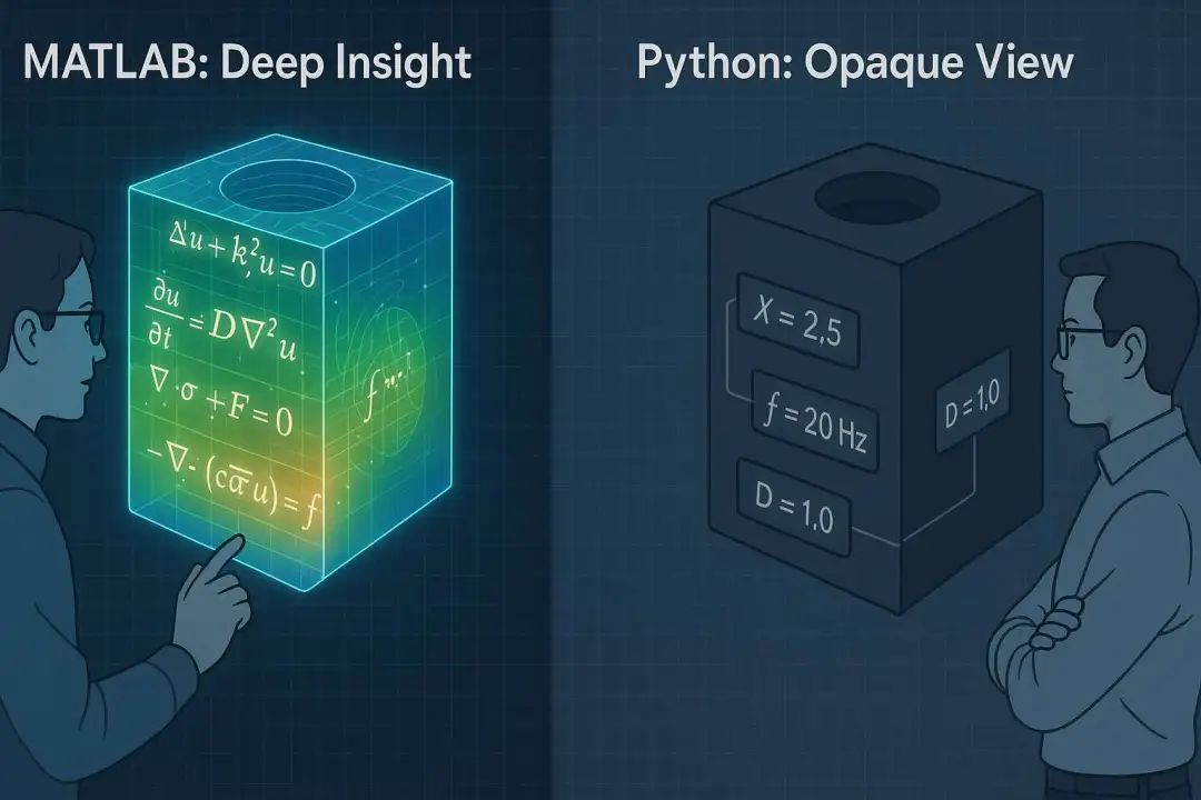 在复杂的 COMSOL 多物理场仿真 领域,每一位工程师和科研人员都追求更高的效率、更强的灵活性和更深度的定制化。当手动操作的“点选式”建模遇到瓶颈,借助外部编程语言实现 自动化、参数化扫描和深度数据分析,便成为了从“熟练”迈向“精通”的必经之路。在这条进阶道路上,MATLAB 与 Python 无疑是最主流的选择。