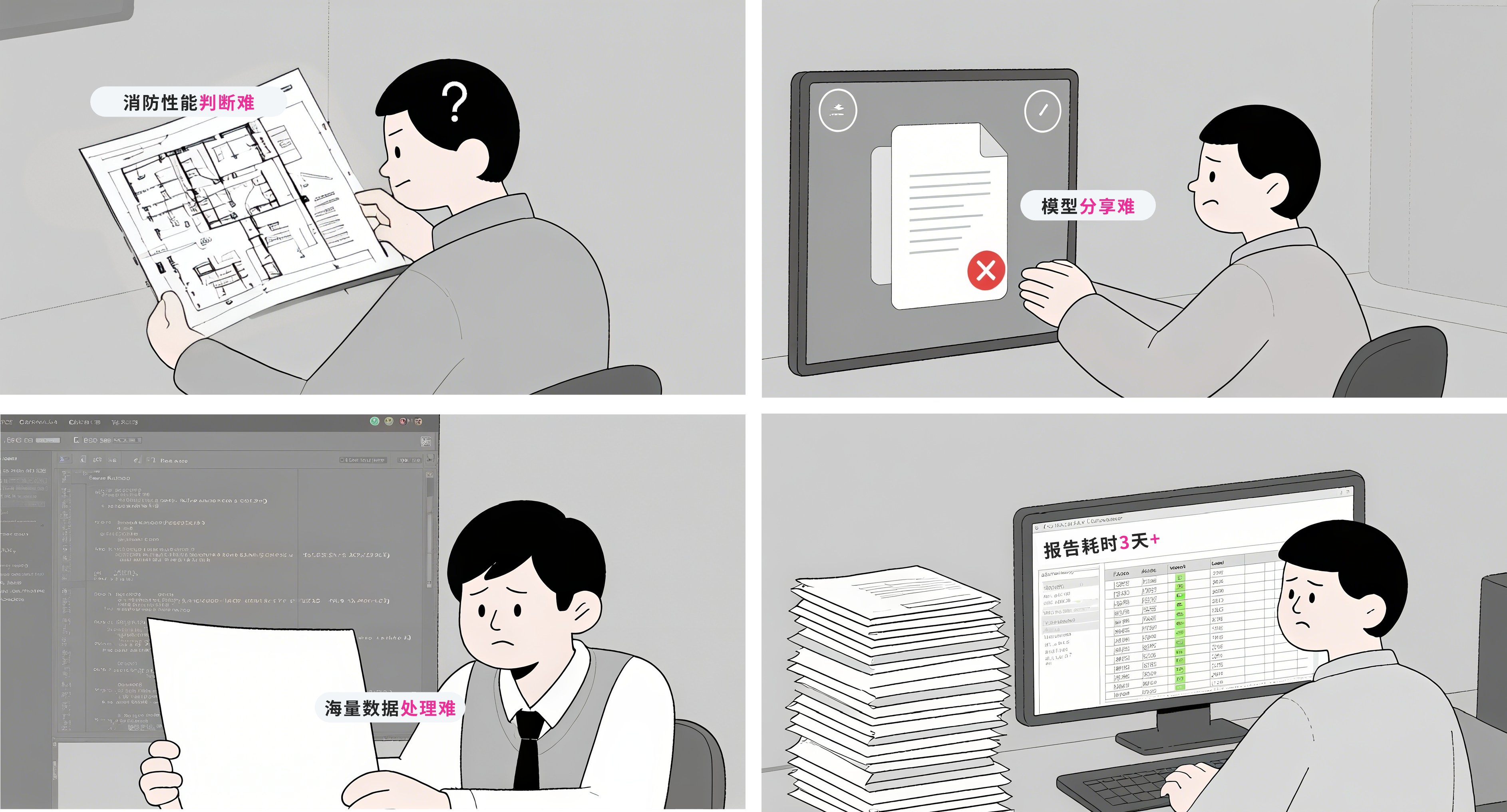 消防评估人员面对海量数据,生成报告效率低下;消防从业者在协同工作时,异地查看模拟结果、共享分析数据总是障碍重重;建筑师在设计中难以精准评估建筑消防性能,合规性校验耗时费力;教师与学生苦于缺乏直观的消防模拟工具,实验报告难以展现分析深度?