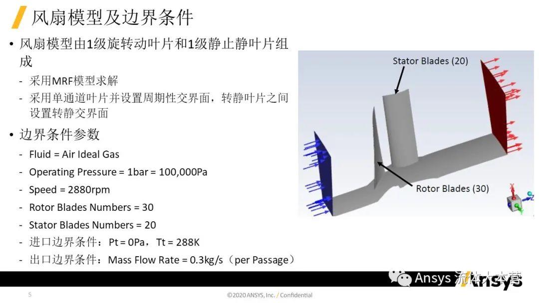 ‐仿真对象为2级轴流风扇,包括1级进口动叶 + 1级出口静叶