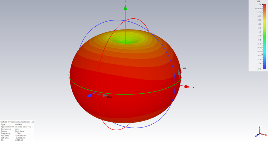 该天线在3GHz时的3D方向图