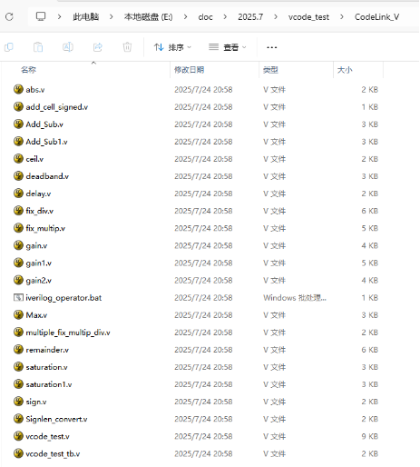 由图6可知,在工程路径的CodeLink_v的文件夹下,可以看到自动生成Verilog代码的所有v文件。这些代码符合行业规范,支持综合编译成bit文件并下板调试。