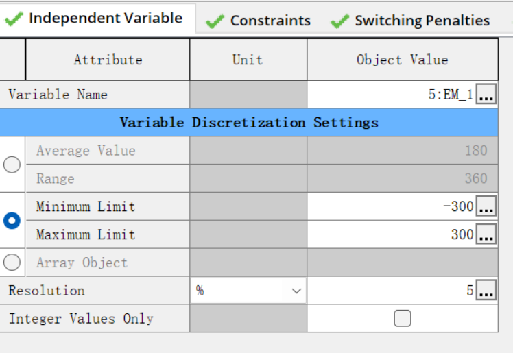 EM1驱动电机的扭矩点扫略(EM1-TRQ)。EM1是驱动电机,当处于串联模式时,EM1的工作点将自动根据目标车速来确定。当处于并联模式时,该扫略才会发生作用,此时发动机的负荷点自动根据总扭矩需求减去EM1的扭矩得到。