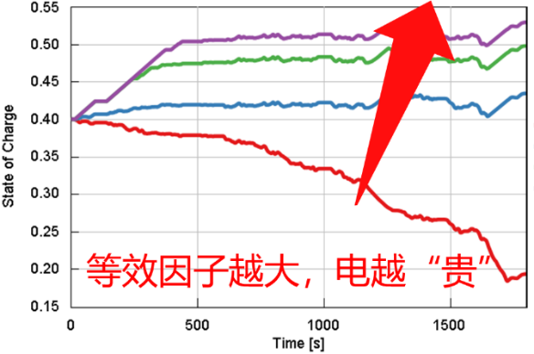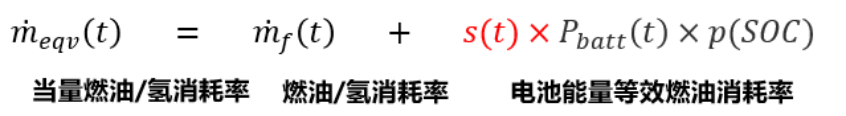 ECMS 将燃油/氢气/电能等多种能耗加权为一个等效能耗,进而实时求解这个局部最优问题。代价函数的定义至关重要,本文所用方程如下所示。等效因子s 的增加,表示电耗所占权重越大,即电越贵。