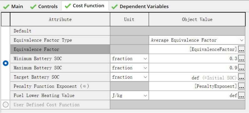 式中,p(SOC) 表示SOC的惩罚函数。SOC0表示目标SOC。用户可以在GT中灵活地自定义代价函数。