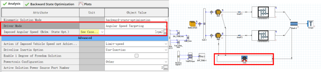 如下图所示,在车辆运动学模板(VehKinemAnalysis)中,选择 Angular Speed Targeting 模式,可以指定减速器输出侧的转速[rpm],便于后续进行DoE。