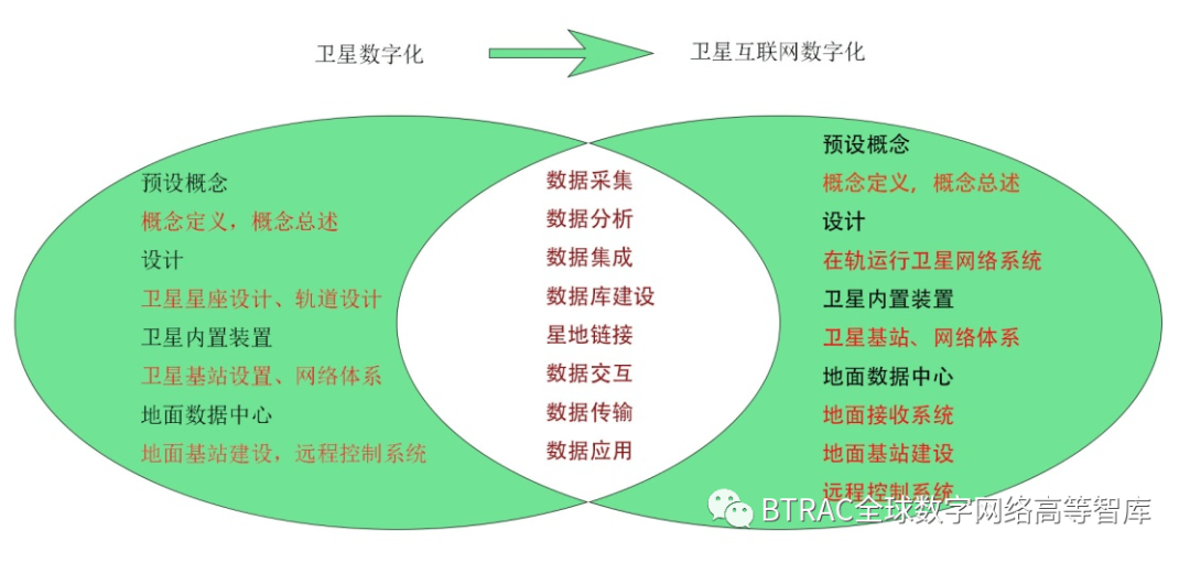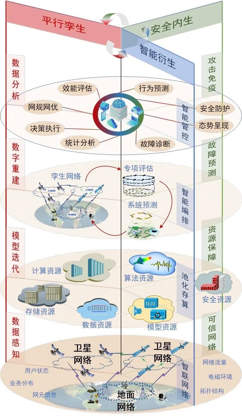 ③在智能化方面,基于数字化与网络化,借助智能卫星、智能设备、大数据、人工智能等技术,实现对数据、知识、经验的分析挖掘,进而提高自动控制、设备管控、网络管理、系统运行等环节的自组织、自同步、自学习、自适应能力;