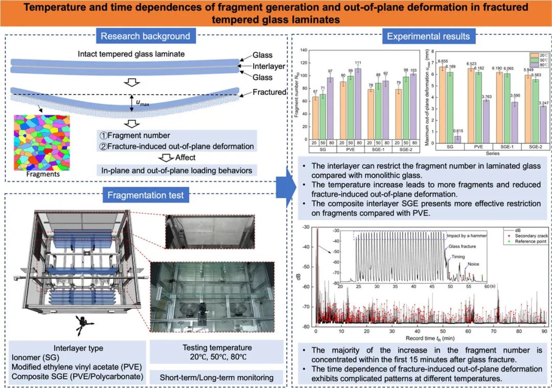 破碎钢化玻璃层合板碎片生成及面外变形的温度和时间依赖性