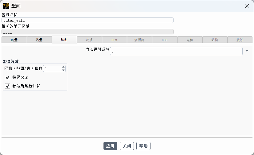 由于是辐射的仿真计算,因此本案例所选用的模型为S2S辐射模型,相关设置如下如所示: