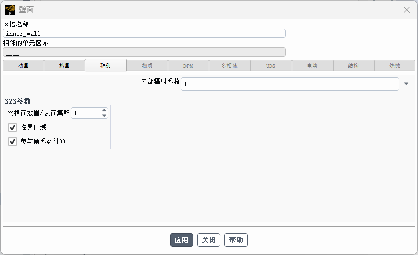 对壁面条件进行设置,首先展开对innerwall的设置,具体设置如下图:
