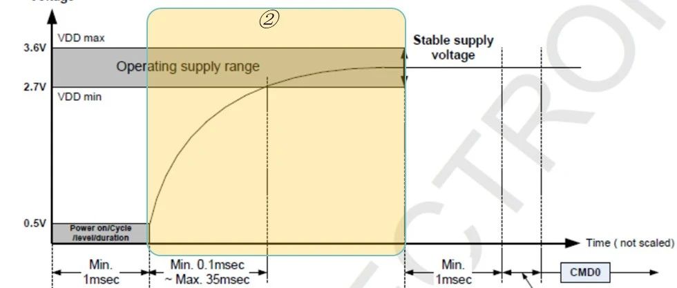 大家好,我是硬件微讲堂。这是我第118篇原创文章。SD卡,大家应该不陌生,搞嵌入式开发,搞硬件开发的,经常会用它来升级程序,存日志,存图像……总之,应用场景很多。既然使用这么频繁,在硬件设计过程中,我们需要注意什么呢?今天我们就来聊一聊。一道问题照例,先抛出一道问题:SD卡的电路设计是按照参考设计来的,为啥SD卡经常会不识别呢?又或者误码?SD卡的电路按照参考设计进行设计,只能说是看起来没问题,只做到这里是不够的。我们作为专业的研发人员,还需要知道深层次的内部逻辑。SD卡-Powerup如上述电路,虽然只画出了3.3V_SD,但实际上我们需要关注的绝不止是下图中展示的直流电压范围。我们还需要考虑SD卡电源上电的时间(Poweruptime)!这里往往是容易被忽略的!如上图序号①紫色区域所示,为了确保SD卡能够可靠地进行硬件重启/复位,需要满足2个条件:①VDD电压需要小于0.5V;②VDD保持电压小于0.5V的持续时间需要不少于1ms。(波形来自网络)如上图VDD的波形所示,从右下角光标△X的数值可以看出下电和上电的间隔有23.621ms,但在一个上电周期的最后阶段只是把VDD降到了1.118V,并没有降到0.5V以下。这样,SD卡不能够被有效的下电和重启。如上图序号②黄色区域所示,VDD在上电过程中有如下要求:①VDD上电波形需要尽可能单调;②VDD从0.5V上升到VDDmin的最短时间为0.1ms;③VDD从0.5V上升到VDDmin的最长时间为35ms;来源:硬件微讲堂
