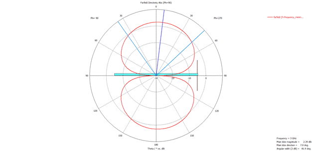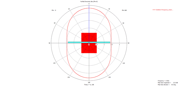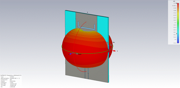 下面看一下挖凹槽后天线的3D方向图,以及平面场图。