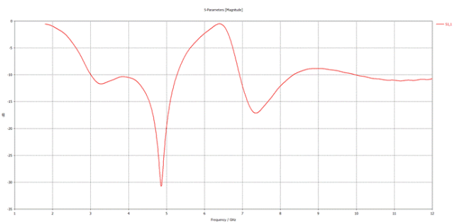 由此可以看出,在天线单元切割凹槽,对天线谐振以及带宽有很大的影响。