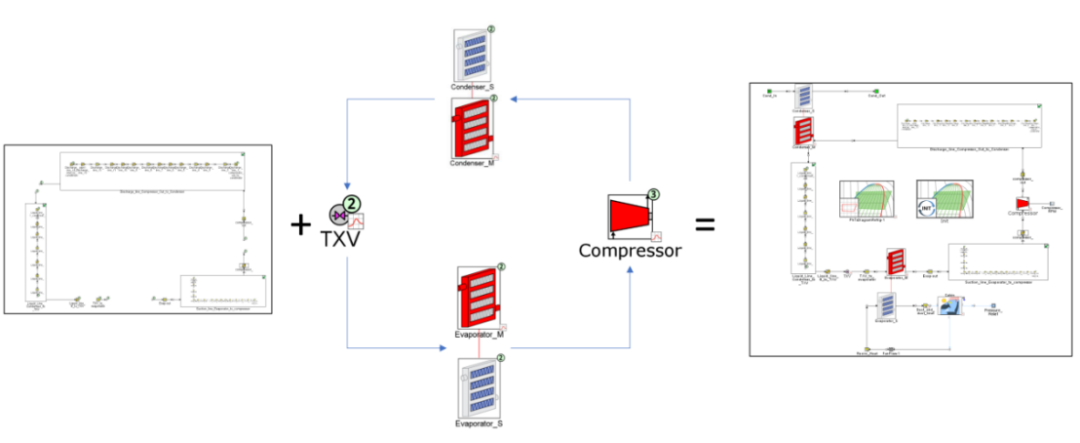 空调系统模型集成,将管路系统、空调系统部件与乘员舱通风回路整合,实现系统集成。