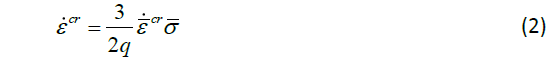 Berezvai,S.,&Kossa,A.(2017).Characterizationofathermoplasticfoammaterialwiththetwo-layerviscoplasticmodel.MaterialsToday:Proceedings,4(5),5749–5754.doi:10.1016/j.matpr.2017.06.040摘要本文针对一种应用于热成型工艺的热塑性泡沫材料进行了力学表征研究。在热成型过程中,此类材料会发生大变形,同时表现出弹性、黏性及屈服特性,且其力学行为具有显著的温度依赖性。目前,商用有限元软件ABAQUS中唯一能准确描述此类材料行为的本构模型是TLVP“双层黏塑性模型”。该模型由弹塑性网络与一个含非线性阻尼器的麦克斯韦型黏弹性分支并联组成。由于双层黏塑性模型缺乏解析应力解,本研究通过多组温度下的力学实验,结合外部优化软件ISIGHT,拟合确定了材料参数。1.引言热成型是聚合物工业领域广泛应用的一种加工工艺。通过该工艺可生产几何结构复杂、厚度极薄的多层制品。在成型过程中,原始聚合物板材被加热至成型温度后发生拉伸变形,经冷却和卸载后获得最终形状。传统方法需通过多次试制才能确定特定制品的最终几何形状及工艺参数,成本高昂且耗时。此外,还需对成型制品的长期使用性能进行预测[1]。因此,对热成型过程进行数值模拟具有重要价值,可同时预测制品的永久变形(新形状)和应力松弛(长期性能)。然而,此类材料的力学行为极为复杂:成型过程中材料不仅会发生大变形,同时表现出弹性、黏性及屈服特性,且其行为具有显著的温度依赖性。因此,在本构模型中除弹性分量外,还需考虑黏弹性效应、屈服及硬化行为。目前适用于此类问题的本构模型极为有限[3],商用有限元软件ABAQUS[2]中唯一可用的模型是双层黏塑性模型[4,5]。本文采用双层黏塑性模型对热成型用聚合物泡沫材料进行本构建模,并研究了该模型在不同温度下的预测精度与适用性。2.双层黏塑性模型双层黏塑性模型的概念由Kichenin于1992年提出[4,5]。该材料模型目前已在ABAQUS软件中实现[2],最初主要针对金属材料开发[6,7],常用于模拟金属的高温变形行为。但需指出的是,该模型最初是为聚合物材料设计的[4,5],同样适用于其他材料类型[8]。2.1一维模型表征图1展示了双层黏塑性模型的一维表征形式。该模型由弹塑性网络与麦克斯韦型黏弹性分支并联组成,因此总应力可通过叠加原理表示为:σ=σ_p+σ_v(1)其中σ_p表示作用于弹塑性网络的应力,σ_v表示黏弹性分支中的应力。两个网络的弹性响应均采用线性各向同性弹性描述,其弹性模量分别为K_p(弹塑性网络)和K_v(黏弹性网络)。因此,总弹性模量可表示为[2]:K=K_p+K_v(2)假设并联网络中的泊松比相同,即ν=νP=νV。各分支弹性贡献的比例可通过参数表征,由此可得模型的弹性贡献表达式:其中ε_el^V和ε_el^P分别表示粘弹性分支与弹塑性分支的弹性应变。网络中的粘性贡献与塑性贡献可采用ABAQUS中任何现有模型进行表征。本研究对粘壶元件采用应变硬化幂律模型,该模型通过等效偏轴应力定义等效蠕变应变:式中A、n、m为材料参数。塑性行为采用线性各向同性硬化准则建模,其特征参数为初始屈服应力σ_Y0和各向同性塑性硬化模量H。总应变可表示为:其中ε_el为总弹性应变,ε_pl^P表示弹塑性网络的塑性应变,ε_v^V则为粘弹性分支的粘性应变。3.实验结果本研究采用的微孔聚对苯二甲酸乙二醇酯泡沫材料(MC-PET)正处于开发阶段。得益于其优异的漫反射特性,该材料被广泛应用于照明器具(如灯罩)中。其结构由两部分组成:致密表层和泡沫芯层,但可假设材料行为具有均质性,可采用连续介质模型进行表征。为研究该材料的粘弹塑性行为,采用Zwick-Roell试验系统在不同温度下进行了单轴循环试验。如图2所示,加载过程包含三阶段:应变控制加载、应变保持(松弛)和力控制卸载。通过循环试验可同步观测弹性、塑性和粘性三种变形行为。试验在21°C、60°C、90°C、130°C、185°C和210°C六个温度下开展:为防止低温下材料损伤,最大应变设定为ε_max=0.62;而在粘性效应更显著的高温条件下,采用ε_max=1。实验结果(图3)表明:材料在所有温度(尤其是高温)下均表现出显著粘性效应,同时永久变形也非常明显。因此,双层粘塑性模型适合描述这种复杂的材料行为。4.参数拟合策略基于实验测量数据,需通过参数拟合方法确定双层粘塑性模型中的材料参数。该模型共包含八个材料参数:弹性模量E、泊松比ν、分支弹性贡献比例系数f、粘性参数A/n/m、屈服应力σ_Y0及硬化模量H。这些参数需满足以下物理约束条件:E,A,σ_Y0,n,H>00<f<1-1<m<0由于该材料模型不存在闭合形式的应力解析解,参数拟合过程较为复杂。可行的方案是通过最小化实验数据(循环试验)与有限元模拟预测结果之间的误差来实现参数优化——每次迭代均需执行有限元计算[9]。具体实施时,可通过ABAQUS[2]与ISIGHT[10]的耦合完成优化流程,其中可选用多种目标函数进行最小化。有限元模型采用1×1×1mm的单元立方体,网格仅包含一个减缩积分八节点六面体单元(C3D8R)[2]。5.结果分析表1列出了通过参数拟合获得的材料参数数值,图4-5展示了材料模型预测与实验结果的对比。图4为工程应力-时间(P(t)-t)曲线对比,图5为工程应力-应变(P-ε)特性曲线。结果表明:温度[°C]弹性模量E[MPa]泊松比ν[-]弹性贡献比f[-]初始屈服应力σy0[MPa]硬化模量H[MPa]粘性参数A[-]粘性指数n[-]应变率指数m[-]21718.990.40.46963.14434.660.001-0.4571.68660628.240.40.28992.29426.9690.001-0.3781.67490324.630.40.256