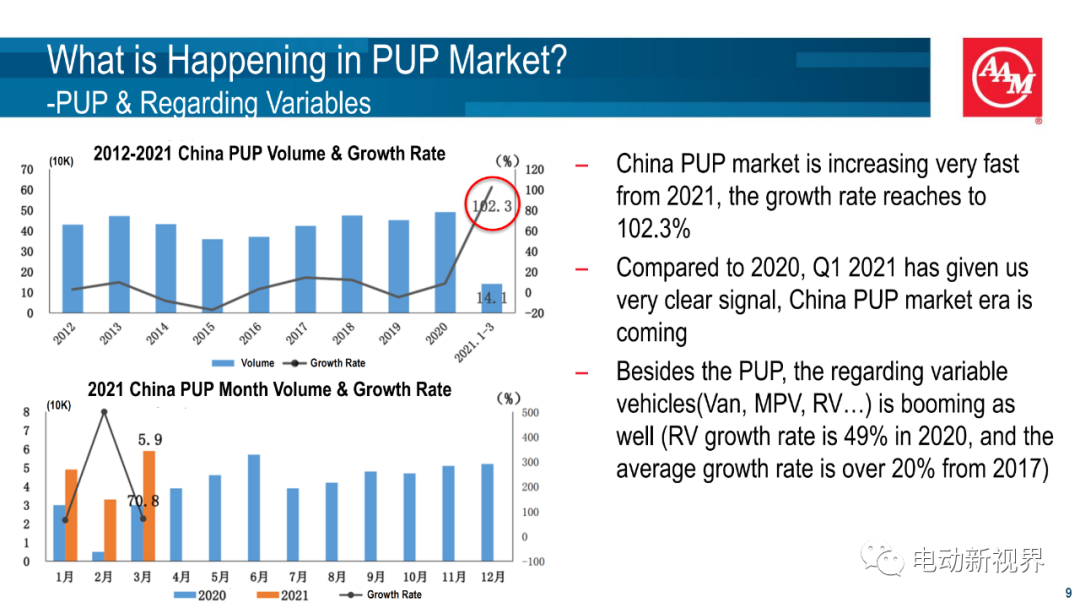 中国皮卡市场从2021年开始增长非常快,增长率达到102.3%。