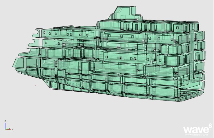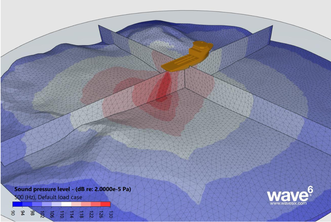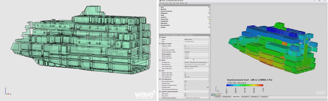 借助Wave6等专业声学仿真软件,懿朵科技可实现对船舶舱室噪声、水下螺旋桨噪声传播、海底地貌对声传播影响等多类声学问题的模拟分析。具体包括: