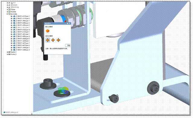 在处理大型装配体时,对成百上千个标准件进行约束是一项极其繁琐的工作。新迪的AI智能装配技术,其核心在于“几何特征签名识别”。AI能够识别出螺栓的“柱面+环形面”和螺孔的“内柱面+环形面”是天然的配合对,从而在工程师拖拽零件至目标位置附近时,自动预测并应用“同轴心”和“面贴合”等约束。这颠覆性地提升了大型总成的设计效率与准确性。
