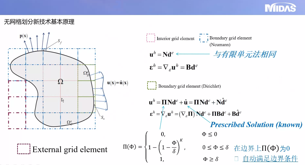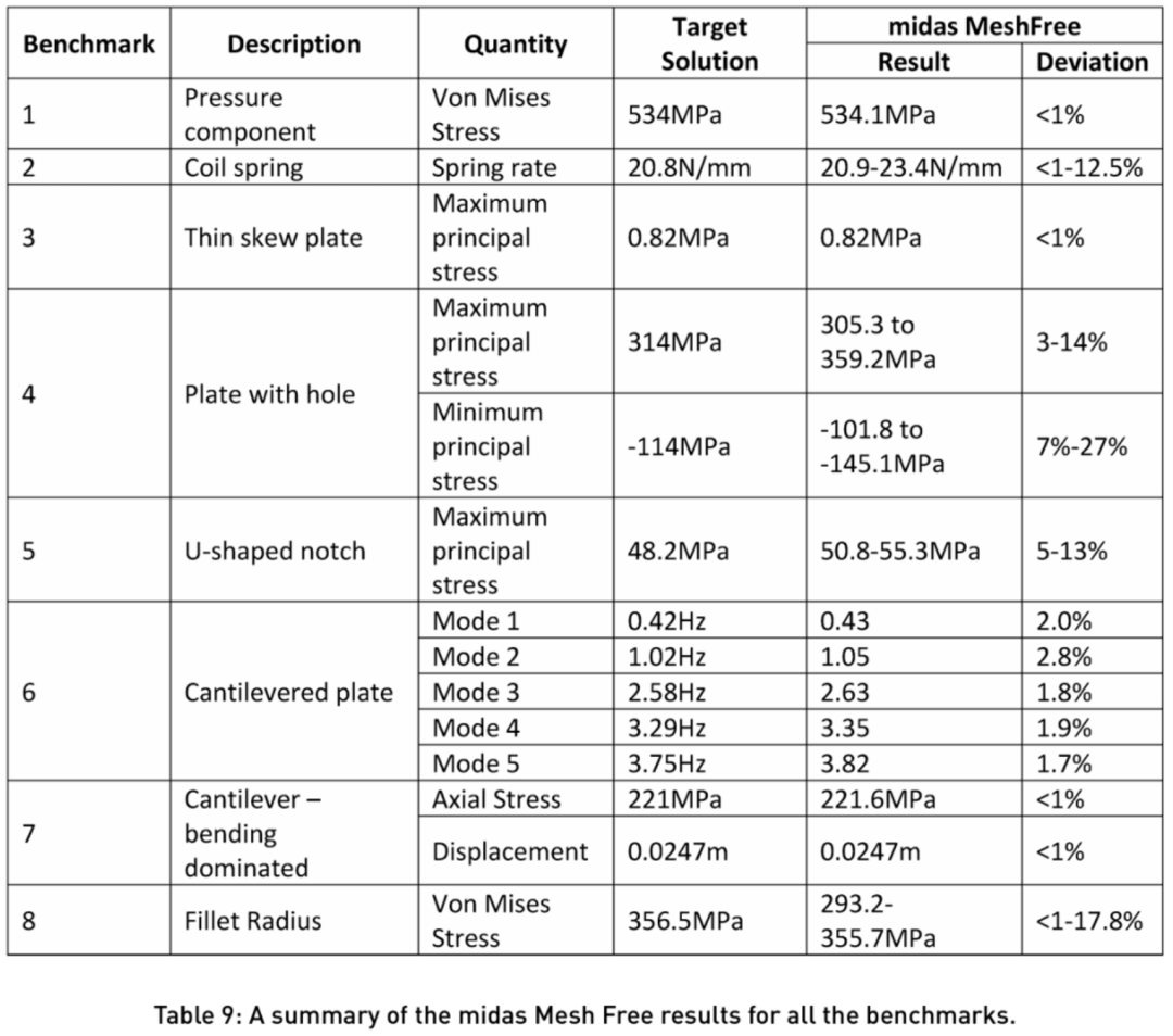 为了降低仿真分析的使用技术门槛,midas联合佛罗里达大学一起开发基于隐式边界法的无网格划分技术,用户只需要通过对几何进行边界和加载设置即可获得力学结果,一经推出获得行业同仁的高度好评,其精度方面也得到了国际有限元组织(NAFEMS)专业测评,结果精度满足NAFEMS的基准测试标准。