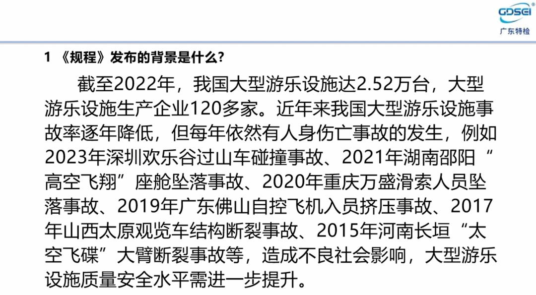 “安全技术规范的版本旨在保障大型游乐设施的安全使用,预防和减少事故,保护人身和财产安全,规程适用于承载乘客游乐的设备设施,包括设计最大运行线速