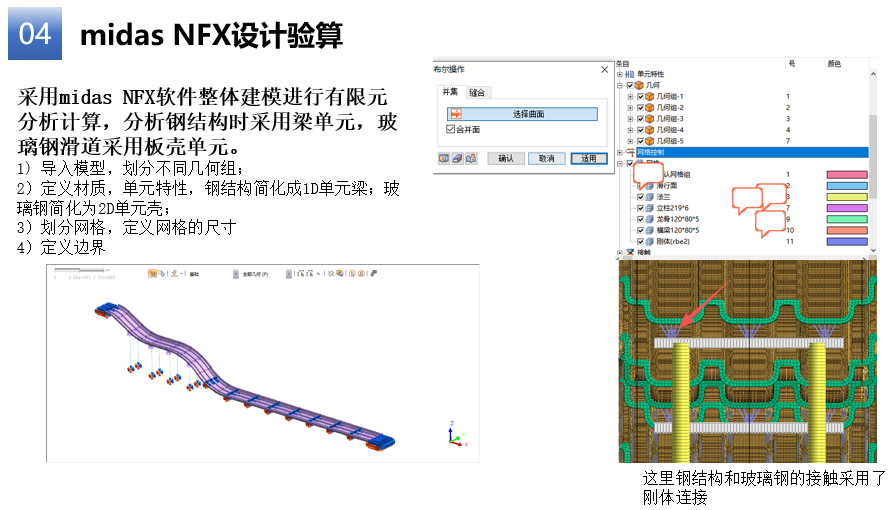 北京迈达斯技术有限公司作为CAE仿真分析软件公司,通过有限元技术对大型游乐设施的安全性要求上,进行相应的静强度、疲劳强度、刚度、稳定性、防倾覆、防侧滑等计算,满足设计和使用要求