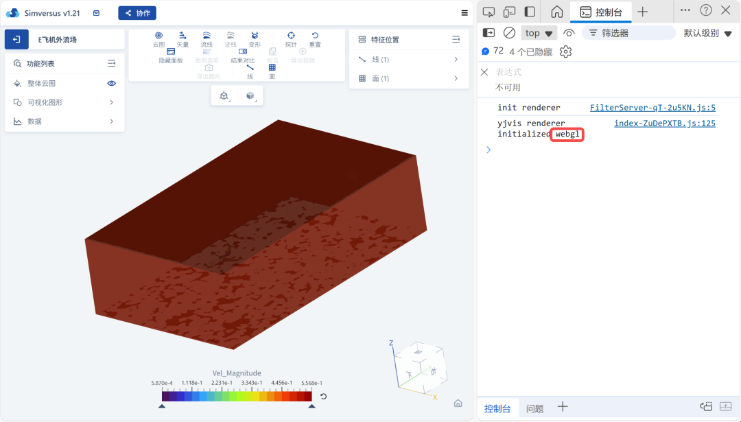 如下图,红色标记部分,如果控制台命令为「webgpu」则说明调用的图形接口为WebGPU,如果是「webgl」,说明调用的图形接口为WebGL。