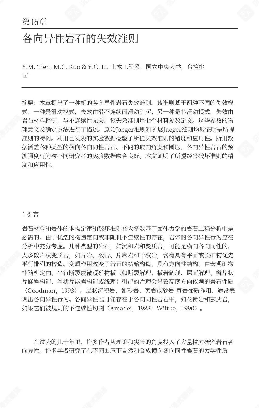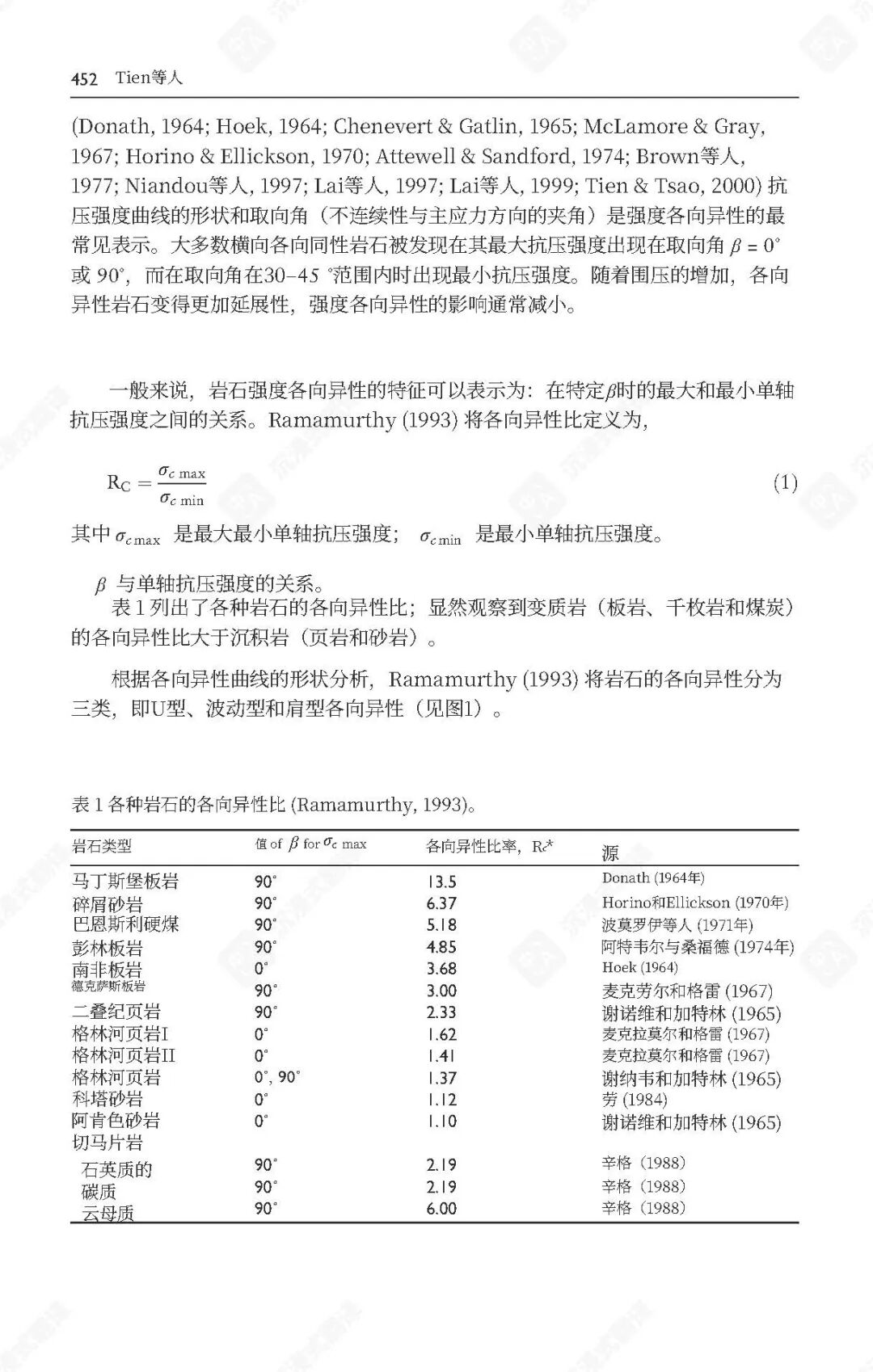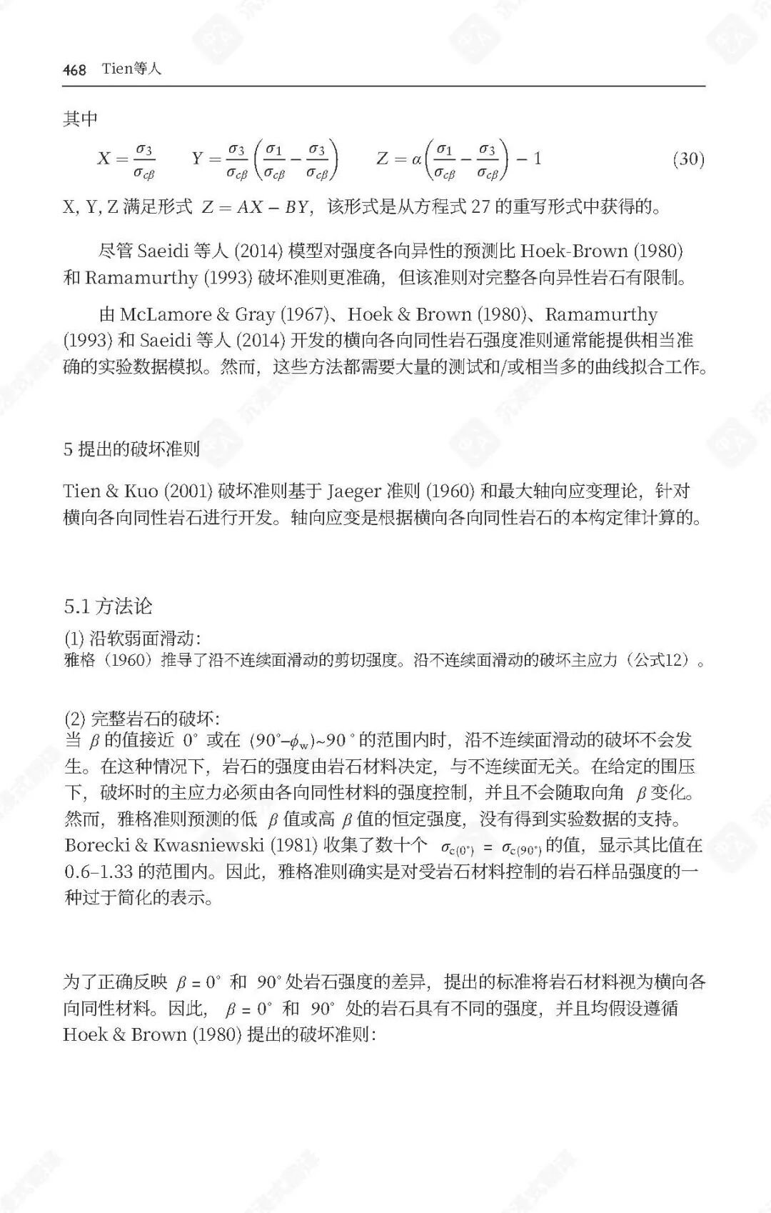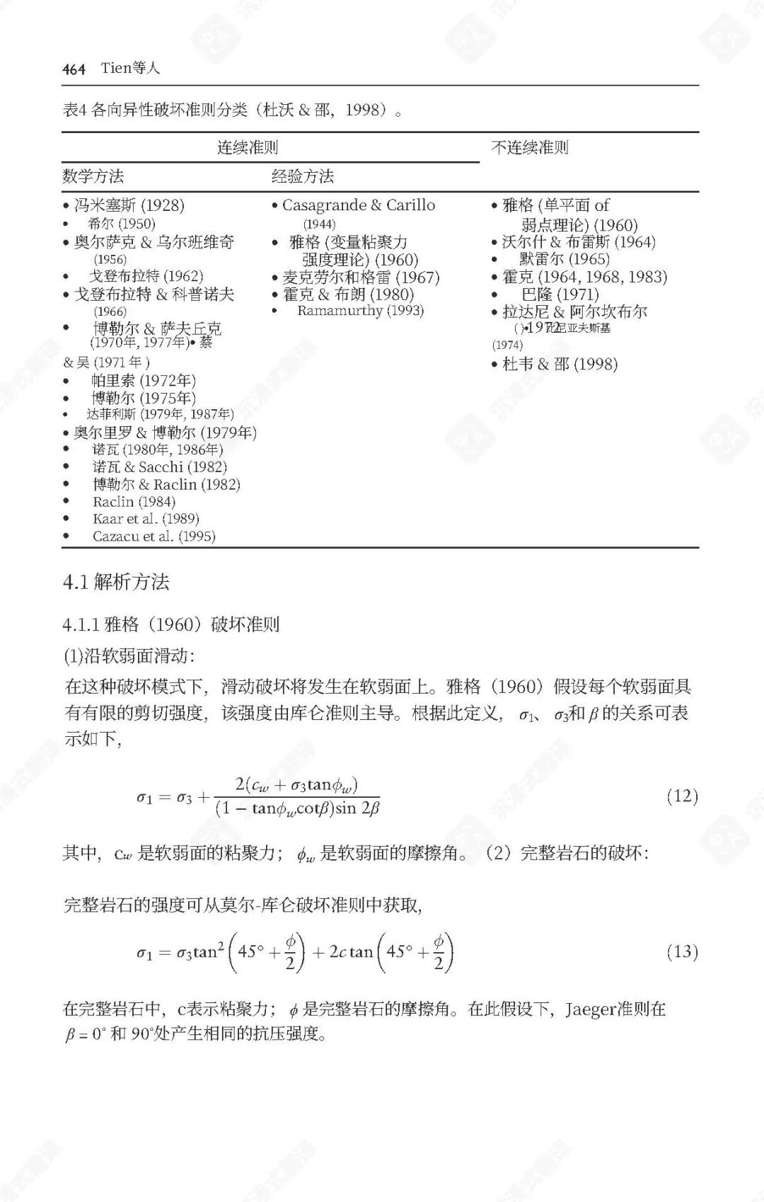 研究人员还提出了修正或抛物线失效准则。修正准则旨在通过考虑片麻岩、板岩、大理石、片岩、页岩、砂岩和石灰岩等各种变质岩和沉积岩的力学性质来确定横观各向异性岩石的强度。这种修正引入了一个反映强度各向异性的指数。还开发了一种简化的抛物线模型,通过修改完整岩石的常规抛物线准则,来预测不同围压和层理角下岩石的强度。该模型包含两个与层理角呈三角函数关系的方向依赖性参数。