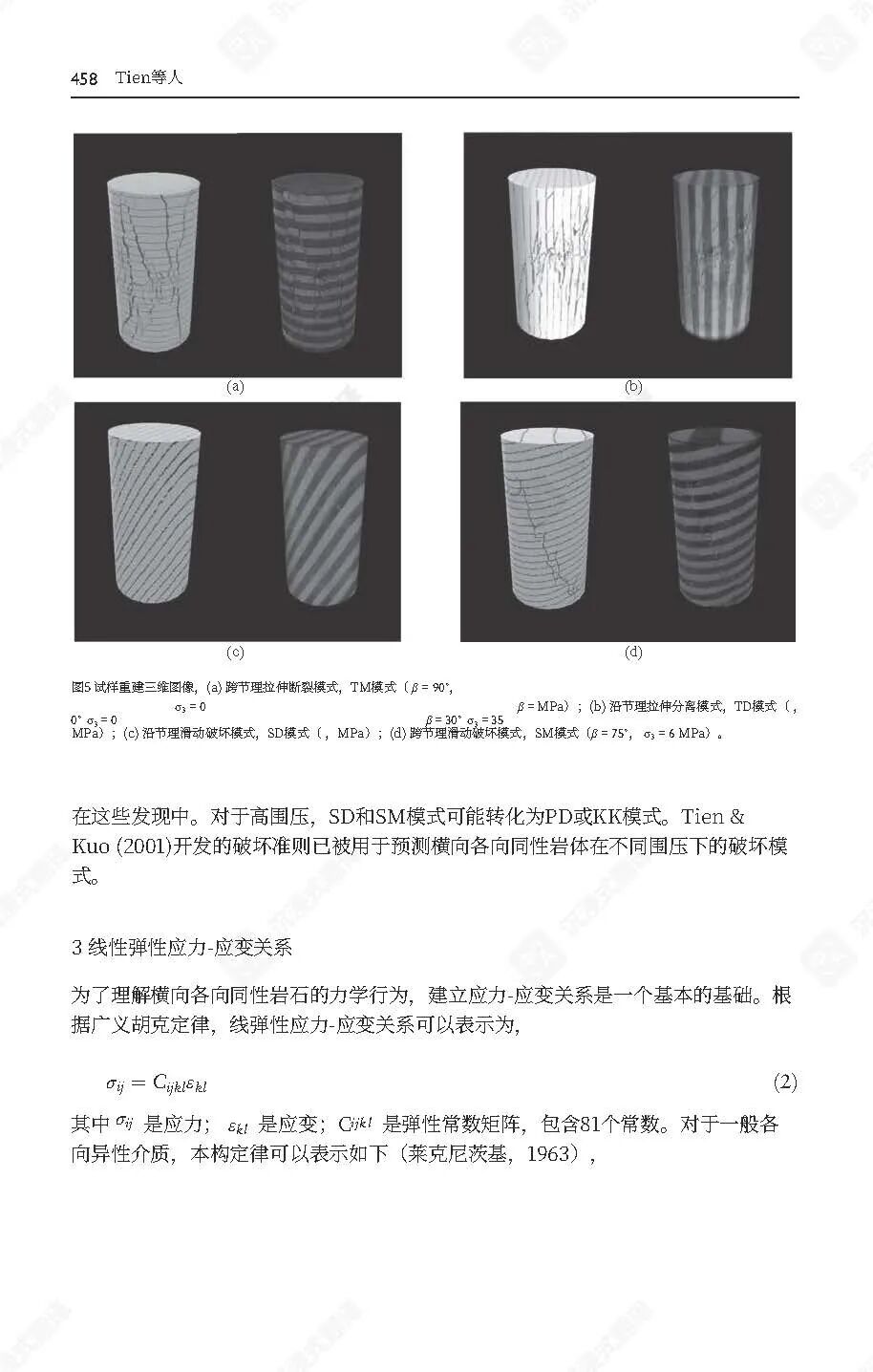 横观各向同性岩石的失效准则对于理解和预测其在各种地质和工程应用中的力学行为至关重要。与各向同性材料不同,横观各向同性岩石由于层理面、片理或微裂缝等内在特征,其力学性质表现出方向依赖性。这种各向异性显著影响了它们的强度和失效模式。