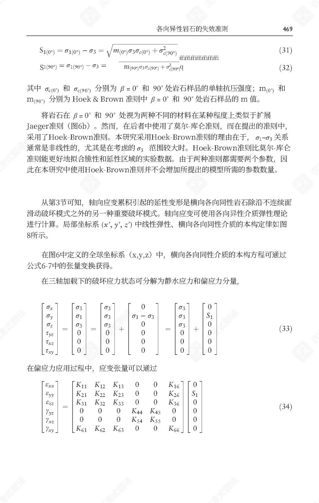 为了解决横观各向同性岩石的独特性,已经开发了几种失效准则,包括对现有各向同性准则的修改以及纳入各向异性参数的新模型。其中一种方法是将各向同性失效准则推广到考虑各向异性。例如,一些准则在各向同性条件下可简化为Mises-Schleicher失效准则。此外,还提出了一个用于交叉各向异性摩擦材料的广义三维失效准则,该准则考虑了中间主应力、剪切带和交叉各向异性等影响因素。