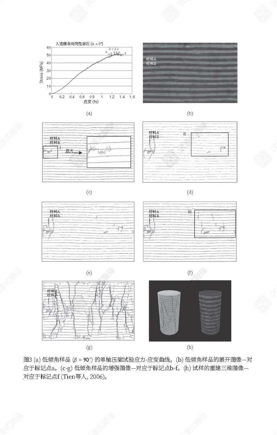 层理面对横观各向异性岩石力学和断裂行为的影响是深远的。实验研究,包括单轴压缩试验,已经探索了横观各向异性岩石的失效机制、过程和模式,通常利用旋转扫描仪等技术获取不同应力水平下试样的展开图像。研究还制备了具有不同层厚比和互层材料的类岩石试样,以了解其断裂和力学行为,这对于层状岩体滑坡分析尤其重要。